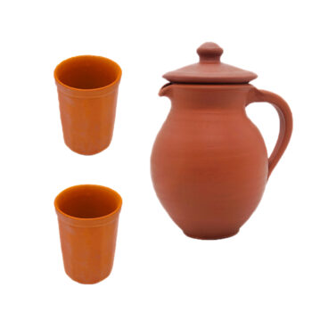 Handmade Earthen Clay Water Jug with Lid – 1.7 liter With 2 Clay Glass